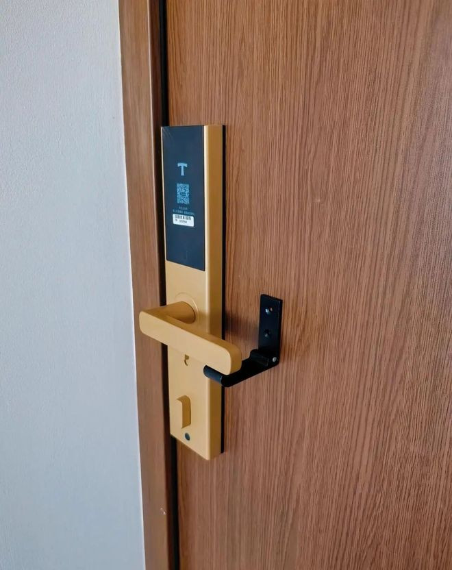 她把家里门把手旁贴个挂衣钩,把手向上是反锁,向下是开门,挂衣钩打开状态就能卡住门,从外面没法轻易打开,相当于一个简易版的阻门器。