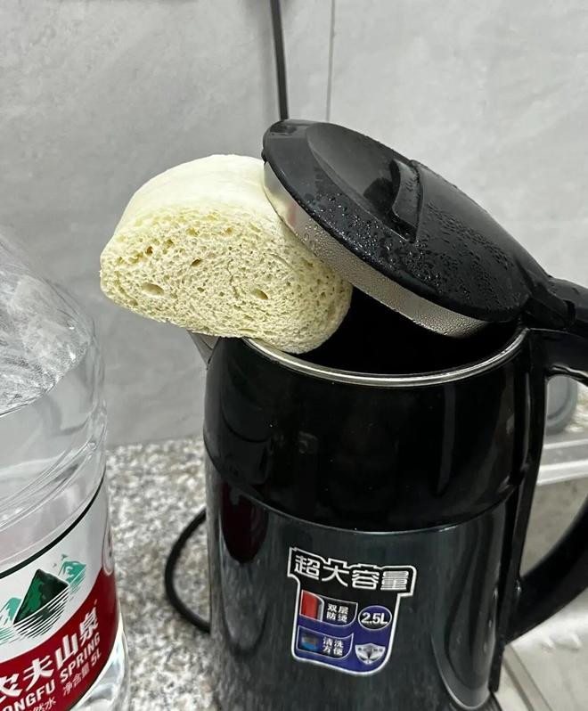 如果担心烫到,在壶上放一次性筷子更稳当,冻硬的馒头都能热得贼软!